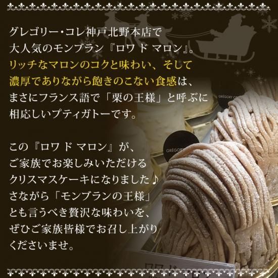 グレゴリー・コレ神戸北野本店で大人気のモンブランが、ご家庭用サイズのクリスマスケーキになって登場です♪
