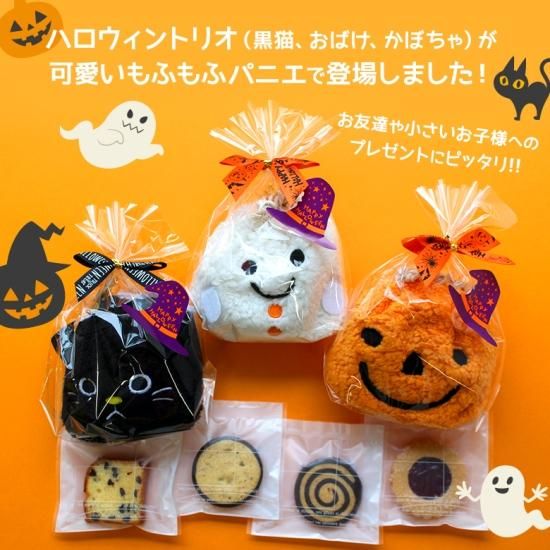ハロウィントリオ(黒猫、おばけ、かぼちゃ)が可愛いもふもふパニエで登場しました!